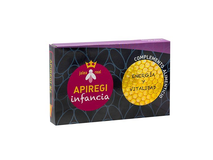145004 - APIREGI INFANCIA- 20 x 10 ml. Jalea Real 500 mg + Calcio + Vitamina C + Vitamina B1 + Vitamina B12 + Vitamina B6 + Vitamina D. Más apetito, energía y vitalidad. La Jalea Real es un tónico natural, indicado para todas las edades y en especial en los niños en sus momentos de mayor actividad. RECOMENDACIÓN DE CONSUMO: de 1 a 3 viales diarios, antes de la comida principal.